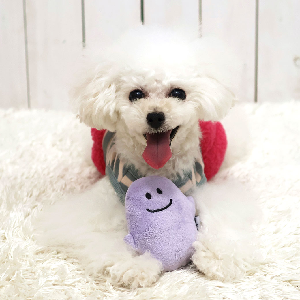 ゆる〜い表情がたまらない、おばけモチーフのかわいい犬用おもちゃです。 小型犬にぴったりな手のひらサイズで、くわえやすくて投げやすい。 中には鳴き笛入りで、音に反応して夢中で遊べます。