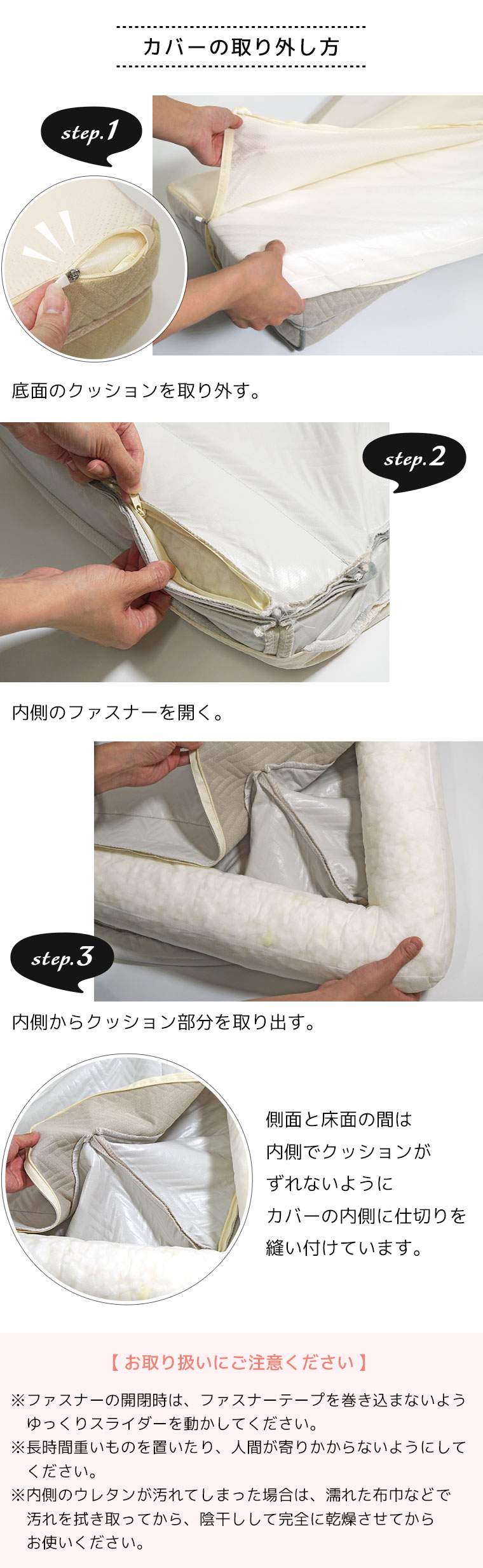 ※通常は汚れをふき取り程度にし、カバーのみのお洗濯を推奨します。