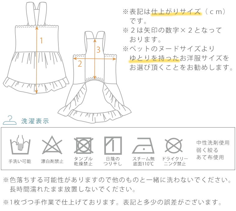 ※ お洋服のお手入れ方法は、手洗いを推奨しております。