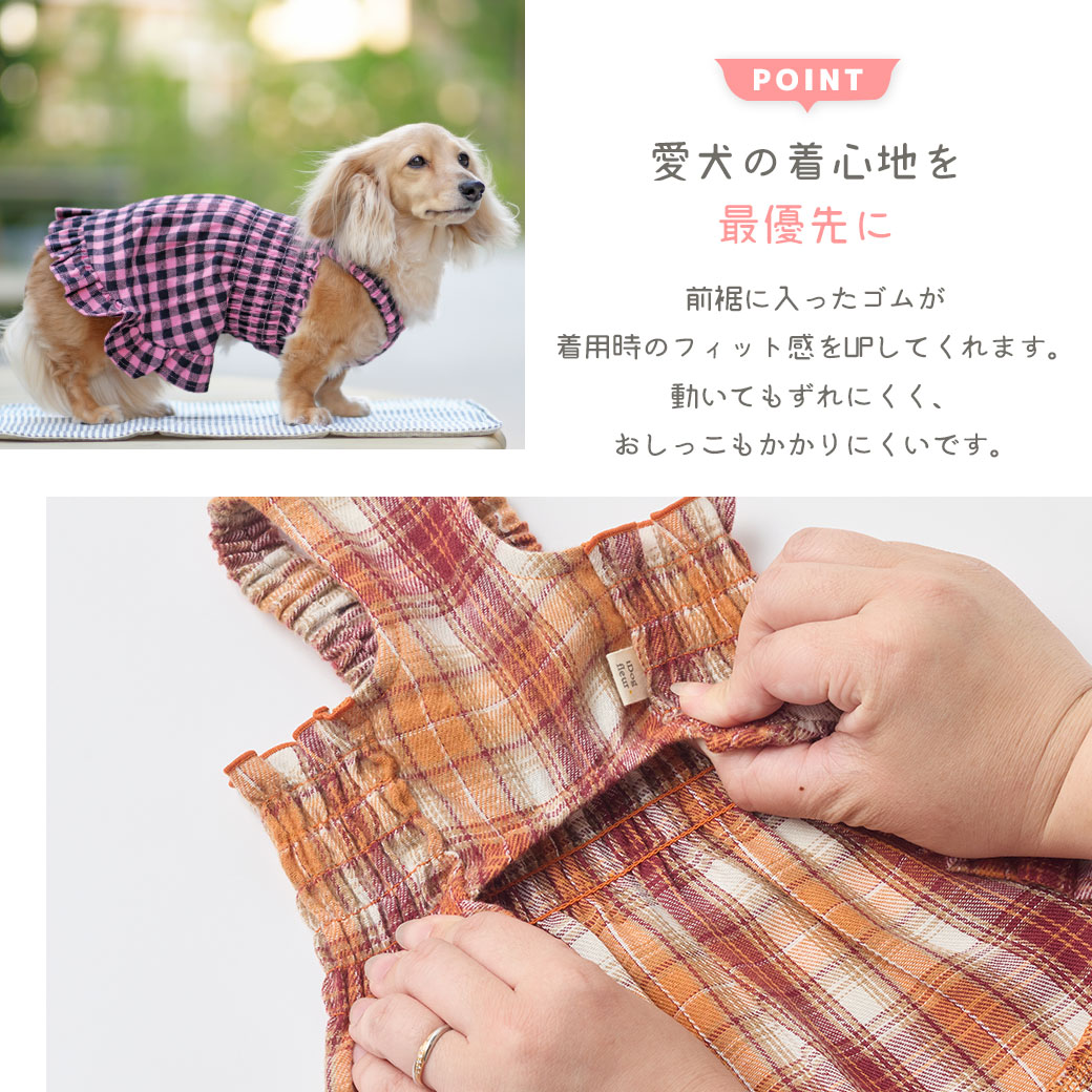 たっぷりギャザーが可愛い犬用ワンピース。 デイリーにもお出かけにも!