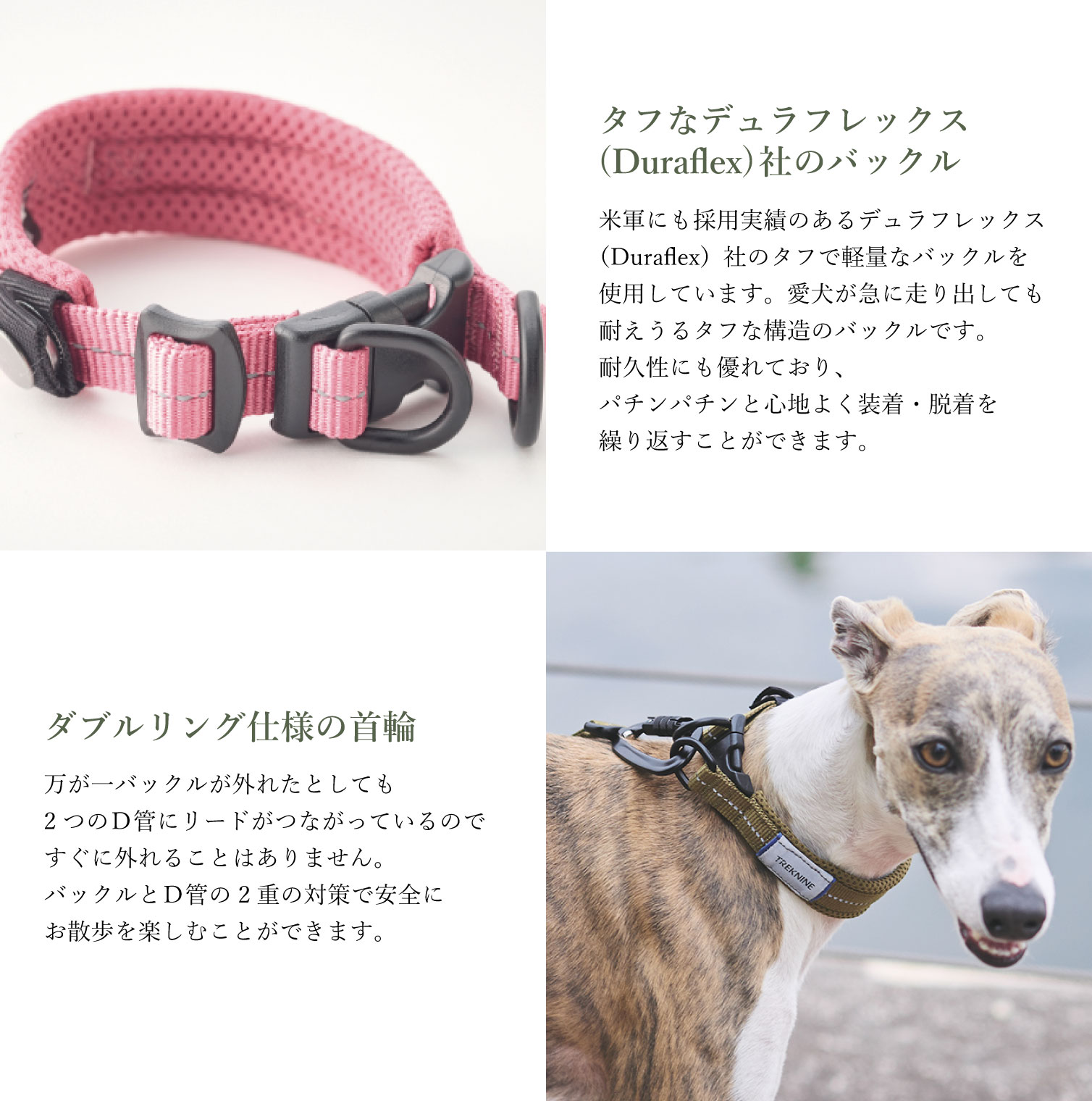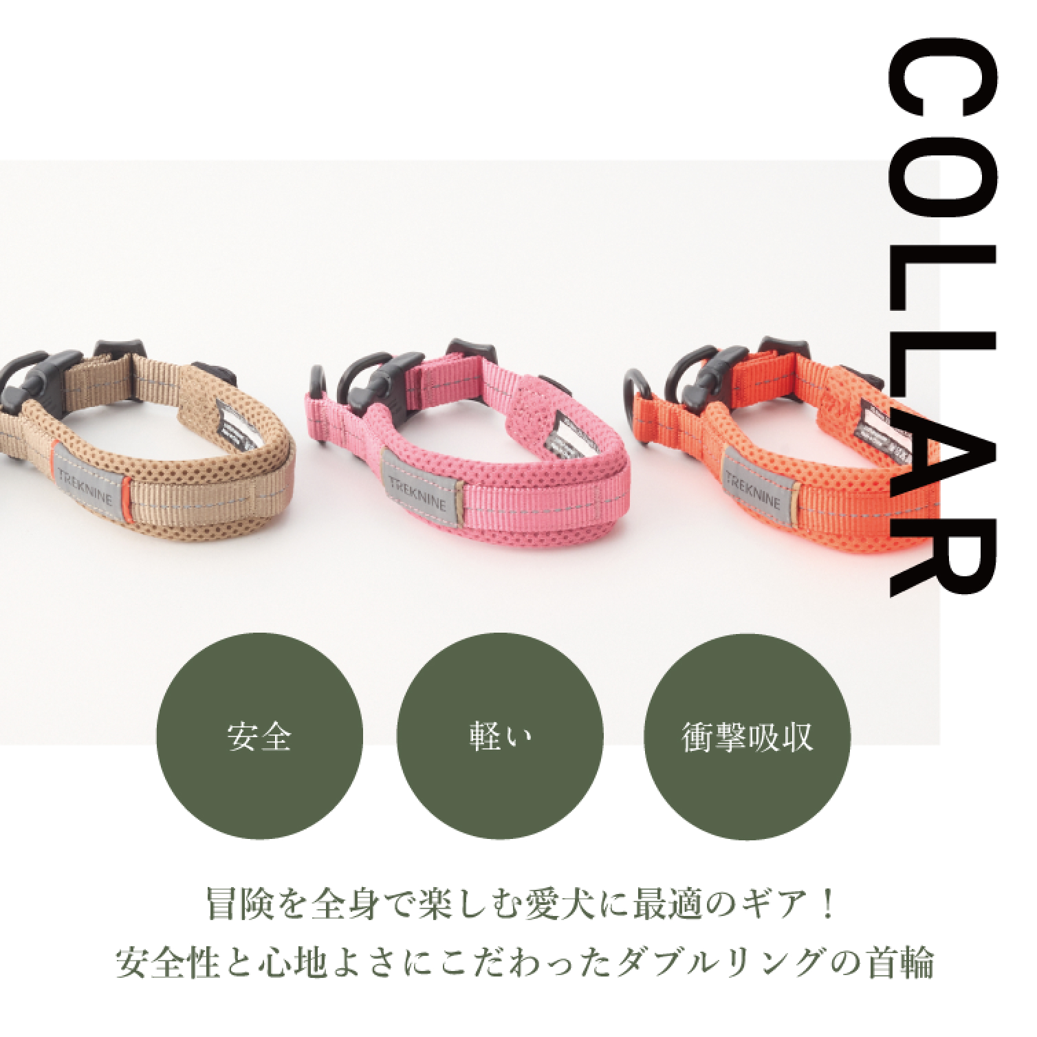 TREKNINEの首輪は毎日のお出かけ時や愛犬のトレーニング時にもピッタリです。