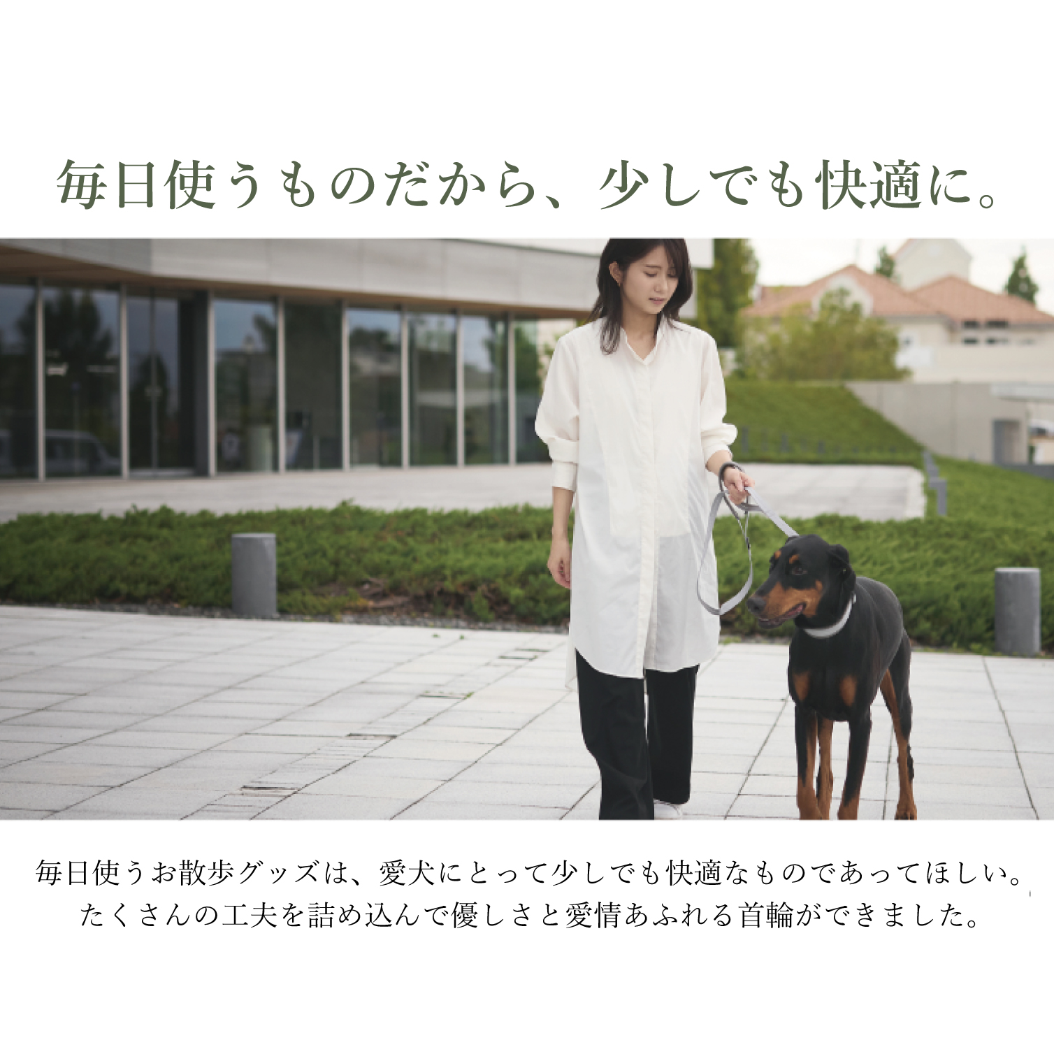 優しく快適な付け心地で、軽く動きやすく、それでいてオーナー様の指示を的確に愛犬に伝えます。小型犬から大型犬まで、サイズに合わせた最適なパーツ選びでしっかりとした耐久性と軽さを兼ね備えた愛犬用首輪です。