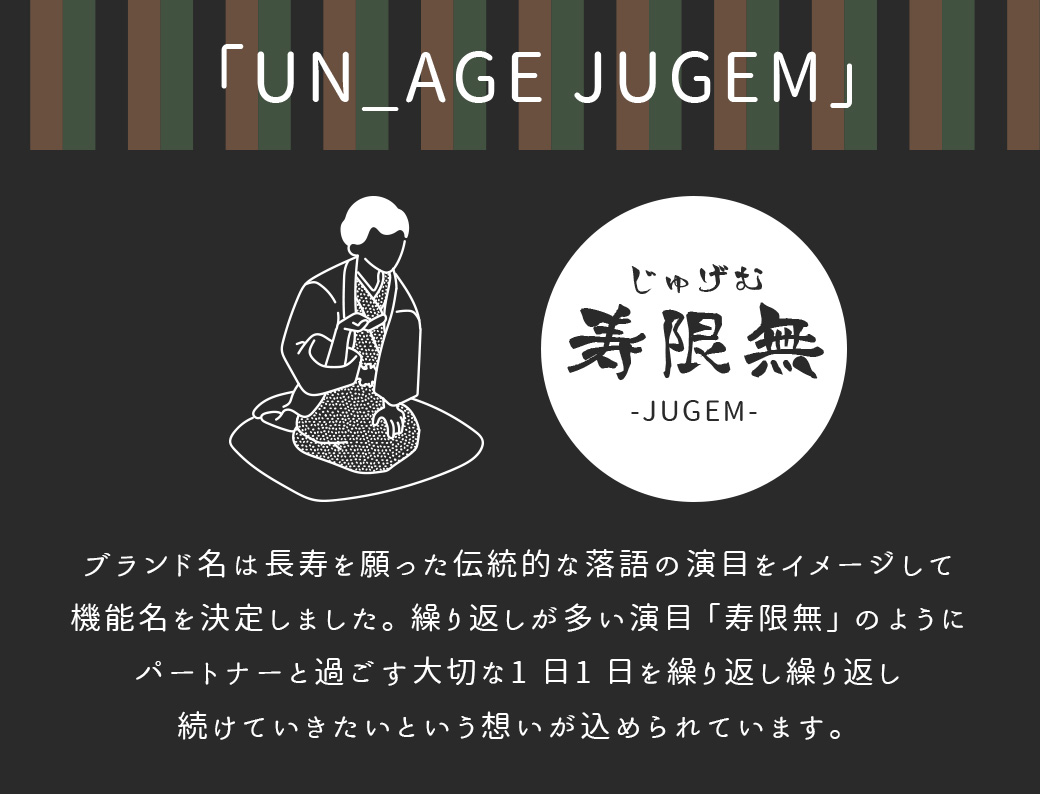 UNAGEウェルネスウェアシリーズの最高峰「JUGEM」。