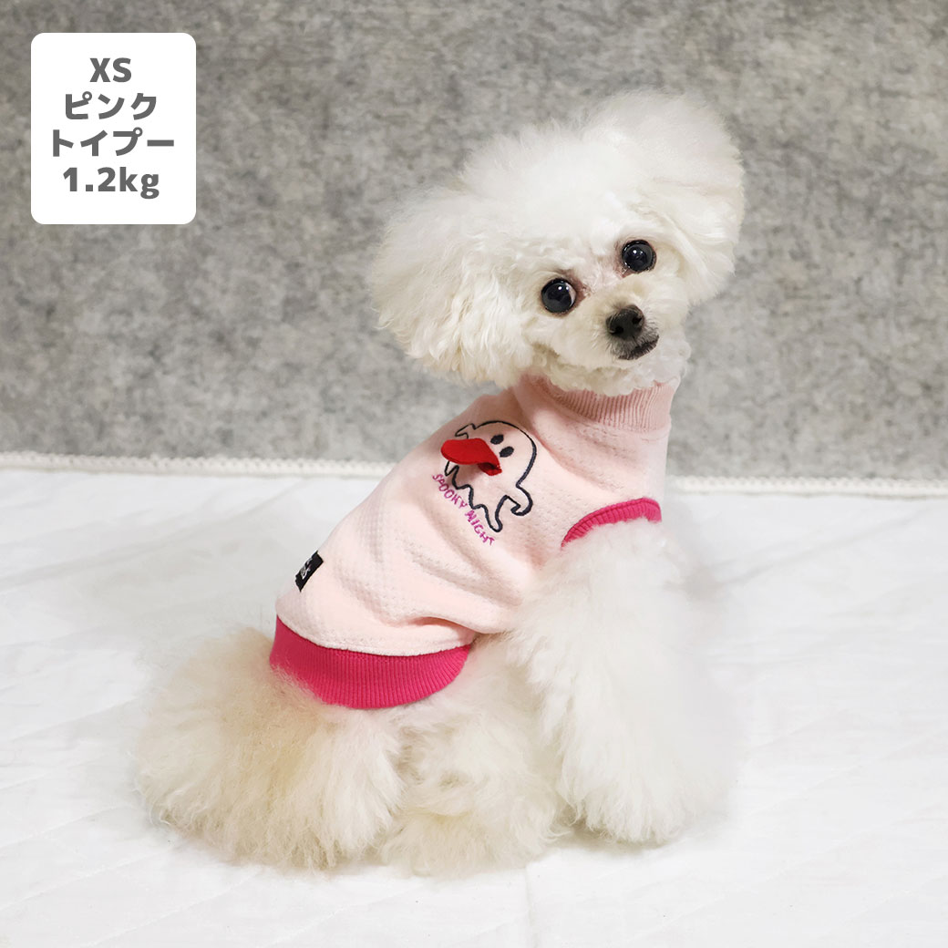 トイプー1.2kg(首15/胴26/丈19cm)のマユリちゃんはピンクのXSを着用