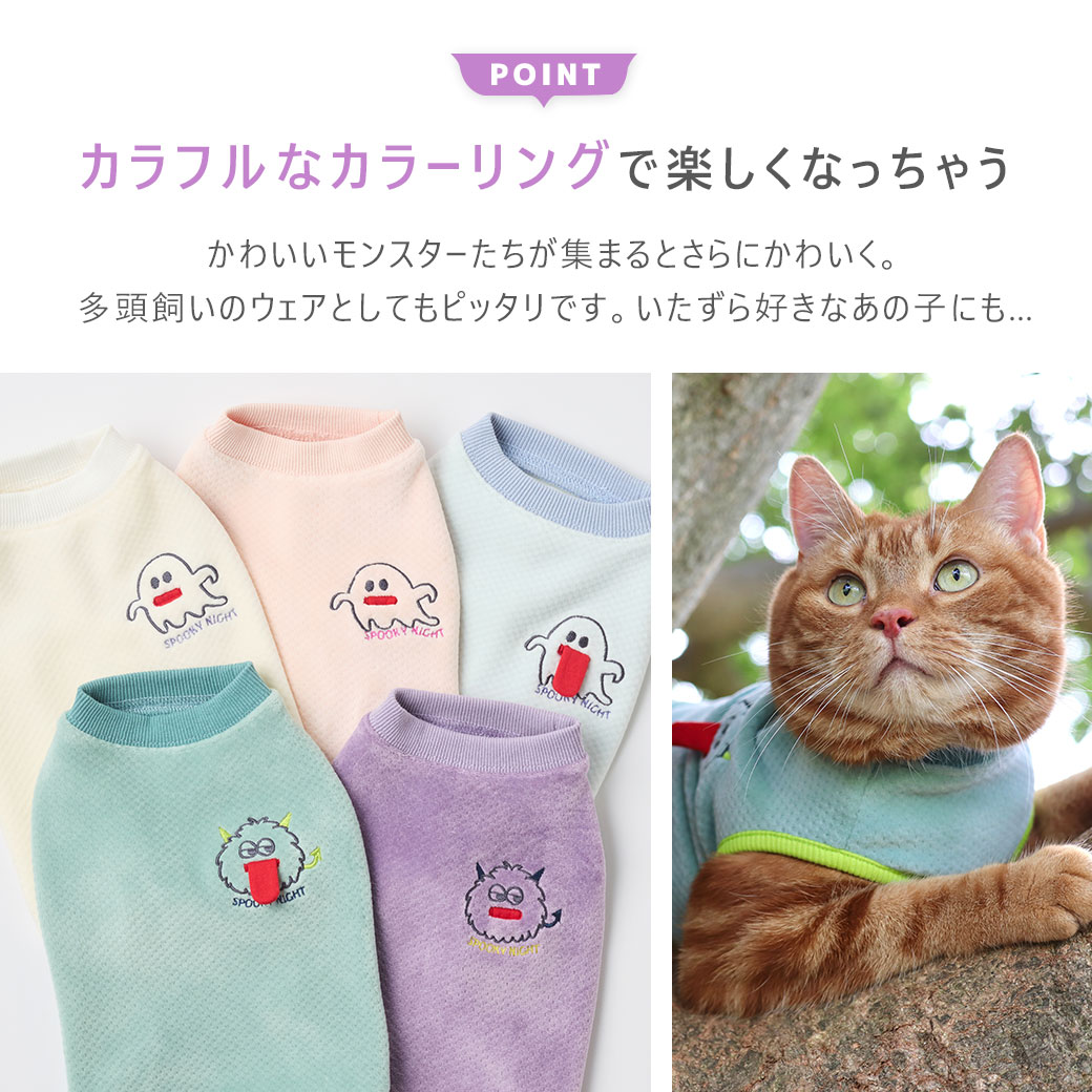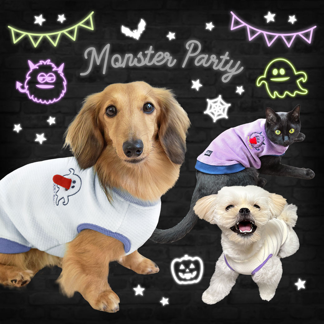 かわいい舌だしモンスターでみんな笑顔になれそうなドッグウェアです。