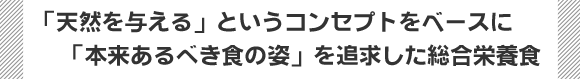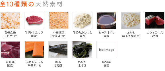 日本各地から13種の食材を調達して手間隙かけて調理することで、合成保存料・香料・着色料を一切使わない総合栄養食を完成させました。