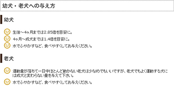 - 食事量はあくまでも目安です。運動量や生活習慣を考えて適量を与えてください。