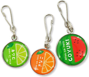 愛犬・愛猫が万が一、迷子になったときのために… iDogオリジナル柄のかわいい迷子札はいかがですか。小さなコイン型の丸いプレートに可愛い絵柄が入っていて、 一見迷子札には見えないくらい、とってもオシャレです。絵柄の中に、ワンちゃんの名前や電話番号などを 入れて、貴方だけの1枚をお作りします。