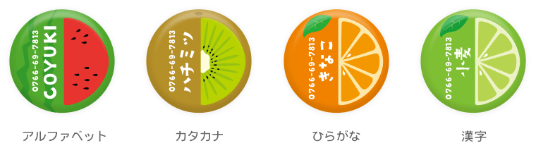 お名前はお好きな表記方法でお作りすることが出来ます。文字色の変更は出来ません。