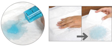 小型犬のおしっこと同じくらいの量の人口尿25mlを大体45度くらいの角度からかけてみて、他社さんのペットシーツと比べてみたよ。ちなみに45度ってのはボクたちがおしっこする時の、おおよその角度だよ。